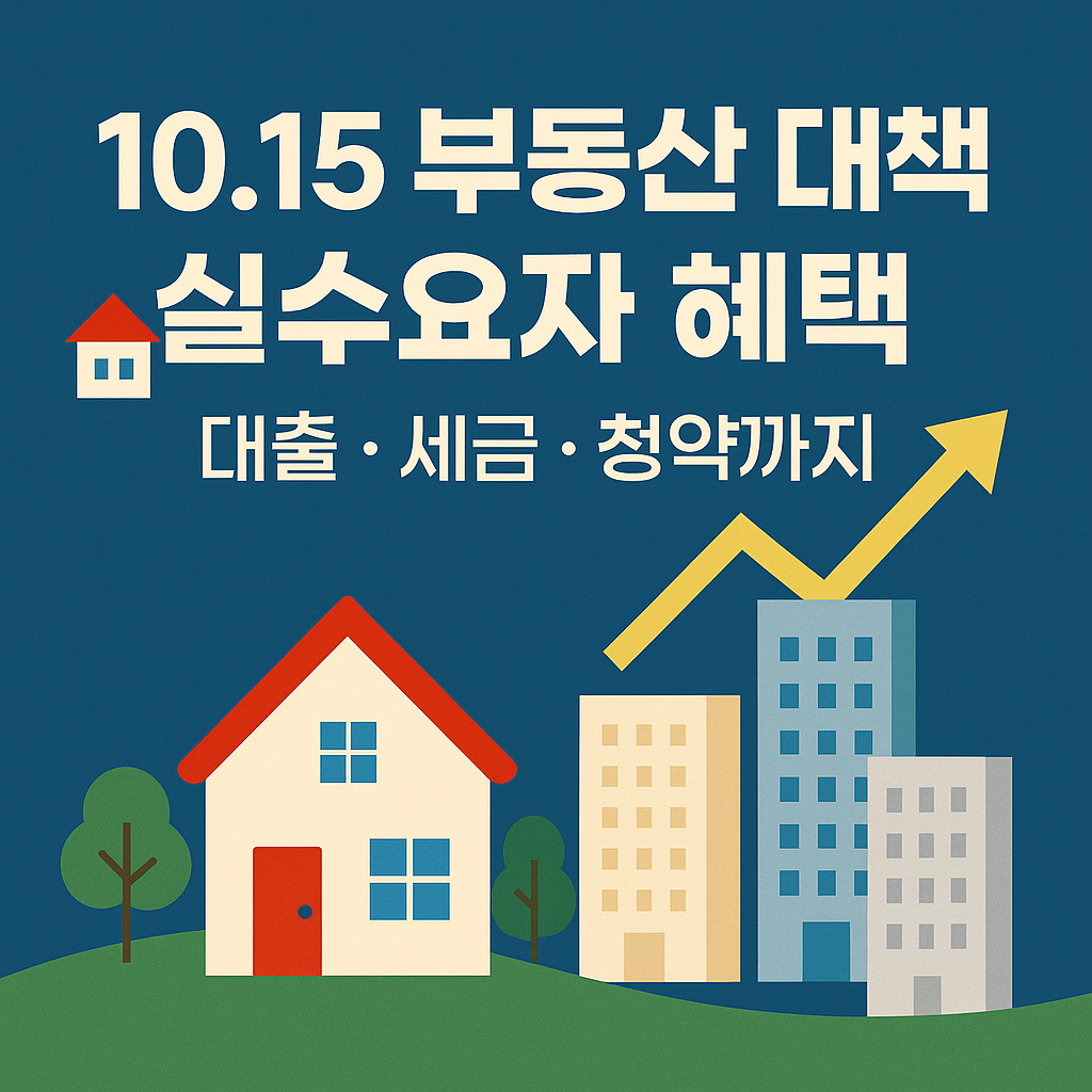 2025년 10월 15일, 정부는 부동산 시장의 안정과 실수요자 보호를 위한 ‘10.15 부동산 대책’을 발표했습니다. 이번 정책의 핵심은 투기 수요 억제보다 무주택자·1주택자 등 실수요자에게 유리한 금융·세제 완화에 초점이 맞춰져 있습니다. 아래에서 구체적인 실수요자 혜택 내용을 항목별로 정리했습니다.